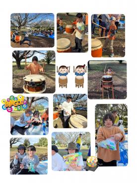 地域交流として今年も お父さんの会 、ぽっぽの会の おじいちゃん、おばあちゃん達に 招待していただき芋煮会に 参加させていただきました! 芋煮を食べる前にまずは体を 動かそう!という事で おじいちゃん、おばあちゃん とペアになってゲームをしました! はじめは神経衰弱! 同じキャラクターの絵をマッチング させるゲーム! なかなかそろわず苦戦する チームもありましたがみんな 楽しそうでした! 次はしっぽ取り! しっぽをつけているチームは 取られないように必死に逃げ しっぽを取るチームは必死で しっぽを取りに行っていました! 次はボール転がし! 少し大きなバランスボールを おじいちゃん、おばあちゃんと ペアで転がして戻ってくるゲーム! フラフープの中に入りながら 転がすので苦戦している様子も 見られました! 最後はフラフープくぐり! 2つのチームに分かれ一列に並び 手を繋いだままフラフープをくぐる ゲームをしました! 子どもたちは日々の活動で やっていたのでとても上手でした! おじいちゃん、おばあちゃん達は ついつい手を離してフープを 持ってくぐろうとしてしまったり 苦戦していました! たくさんのゲームをしたら お腹ペコペコ! 美味しそうな芋煮を 焼きそばやウインナーも 一緒にいただきました! こどもたちは「美味しい、 美味しい」と言って食べて いました。 お昼の後は和太鼓鑑賞会! 和太鼓のリズムに合わせ とび跳ねるお友だちもいました! 演奏会を聴いた後は和太鼓を 叩かせていただきました! みんなリズムに合わせて 上手に叩いていました! 最後はビンゴ大会! 今年も子ども達に景品を用意 してくださりありがとう ございました! お返しに今年は 就労支援つむぐさんが作った ビーズアートをプレゼント しました! 楽しい時間をありがとう ございました。 ![]() |